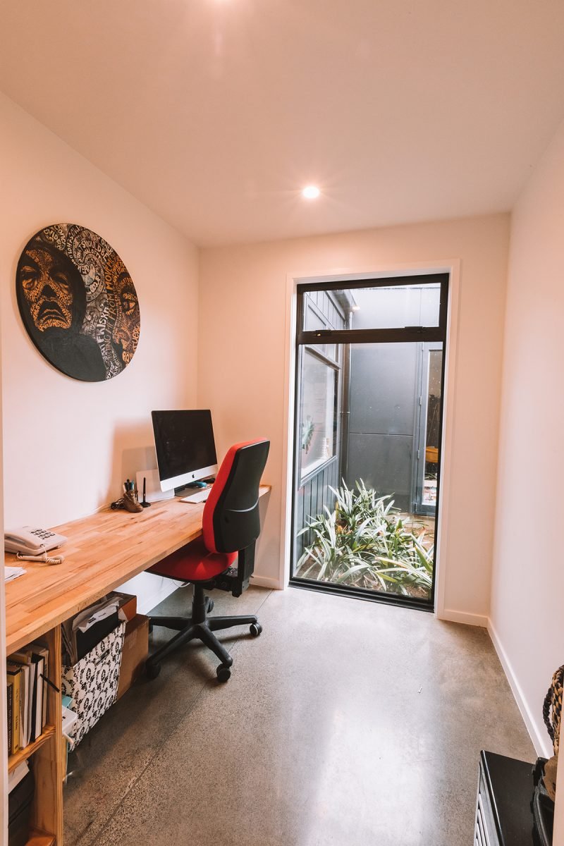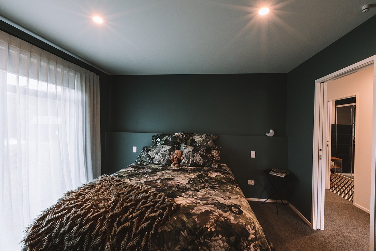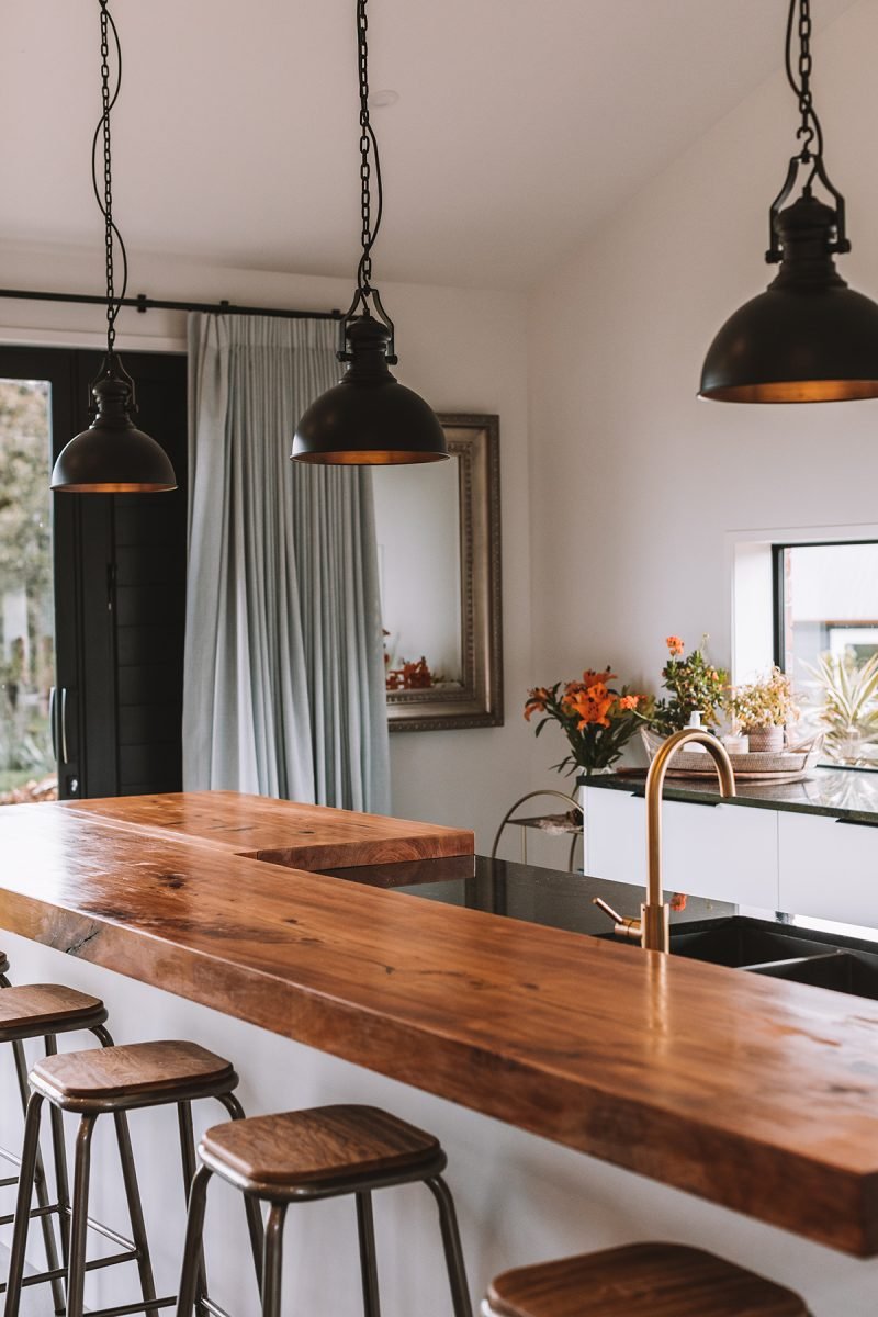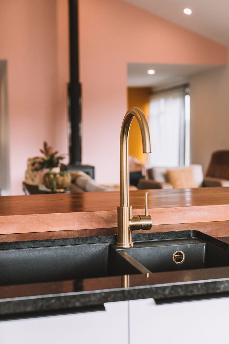 While the project was fairly straight forward without any major obstacles, there are definitely some stand out features that create a beautiful sense of space for this growing family. Scissor trusses have been used to form the large gable with James Hardie linea oblique weatherboard, painted black, dramatically contrasting the raw recycled bricks sourced from Christchurch. Our clients also sourced a stunning kauri benchtop for the kitchen that really made the living space.