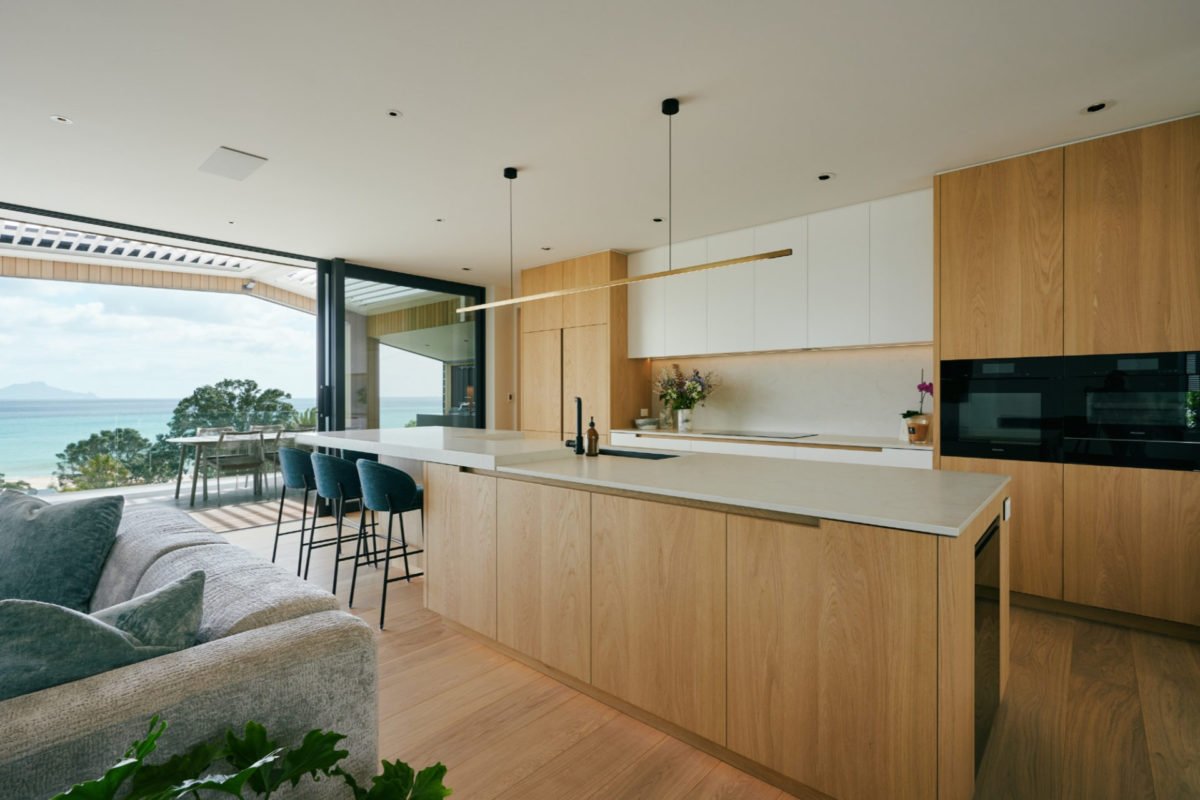 With earthworks commencing just as the Covid pandemic kicked off in early 2020, the build faced an array of challenges around lockdowns, supply restraints with key contractors unable to leave Auckland and international timber supply issues. Thankfully we had some amazing clients who used the time to their advantage and did some thorough research on final design inspiration and interiors so as soon as we could get sub-contractors back on the site, they were raring to go with a clear path.