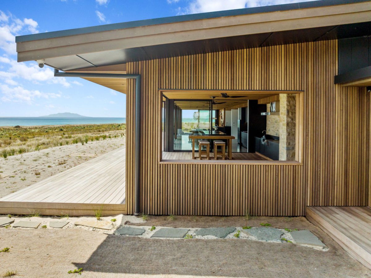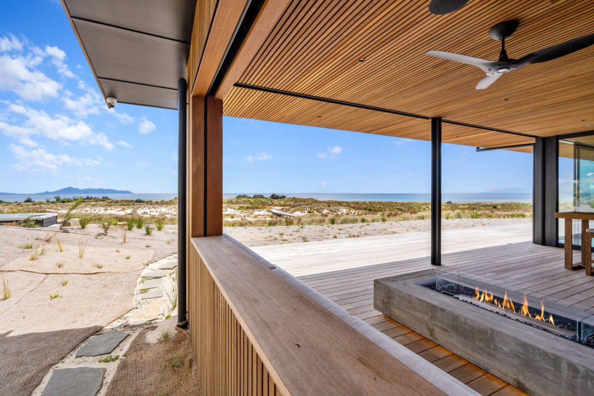 Designed for entertaining, sliding doors along the front of the home provide uncompromised indoor/outdoor flow to the deck area and lanai, complete with custom firepit, outdoor kitchen/dining and fully retractable blinds for all year-round use. Hidden to the side of the house is an outdoor shower, a must for any home just metres from the beach.