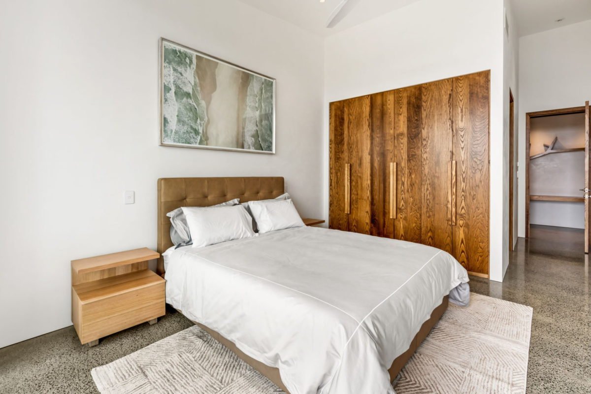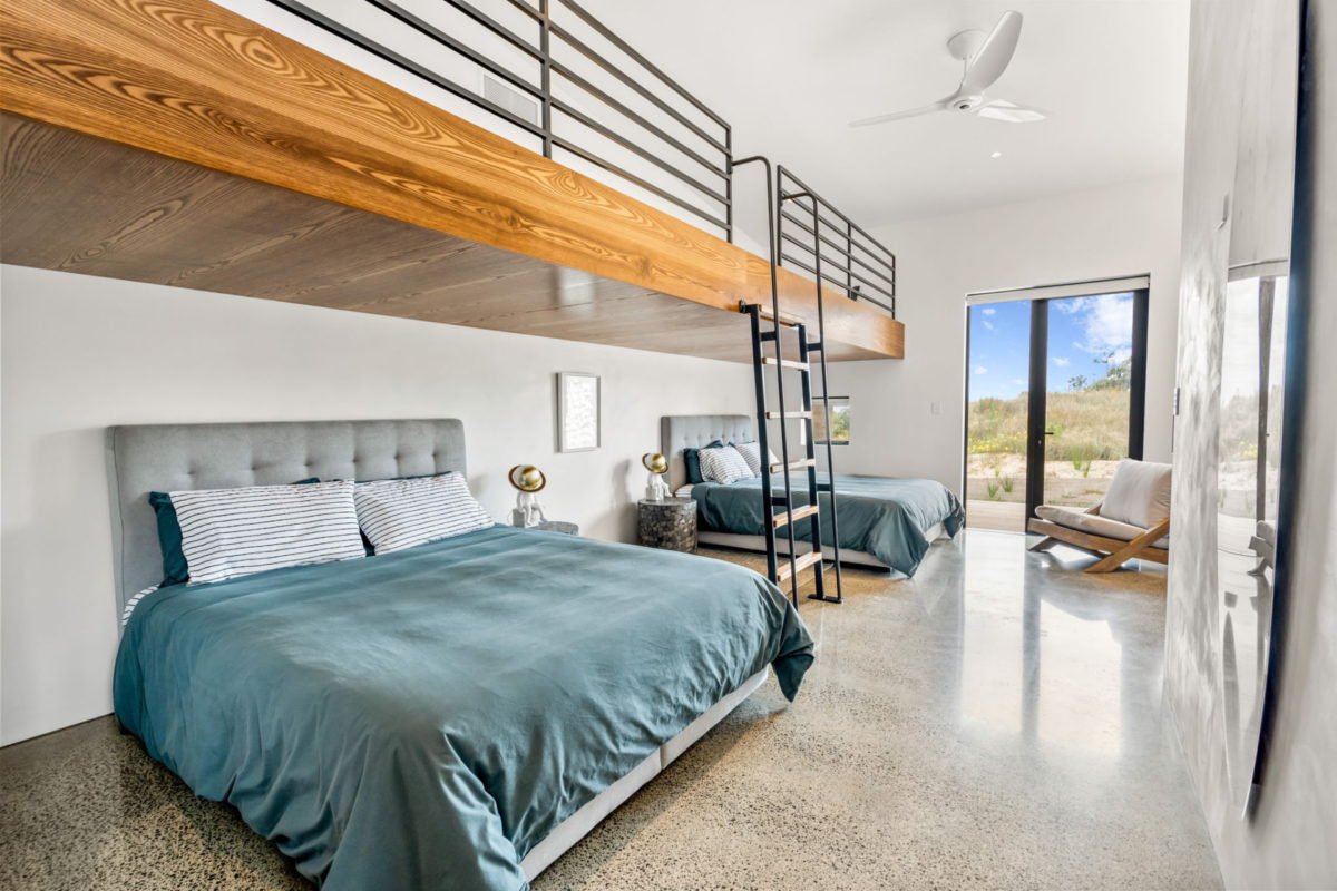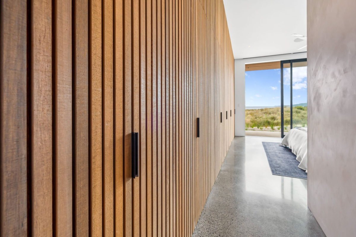 Nestled amongst the sand dunes, this open and airy home is the epitome of coastal cool. As you walk down the covered pathway to the front door you are greeted by a stunning limestone wall with feature lighting and a one-of-a-kind hand carved door handle beautifully accentuated by the full height sold black door.