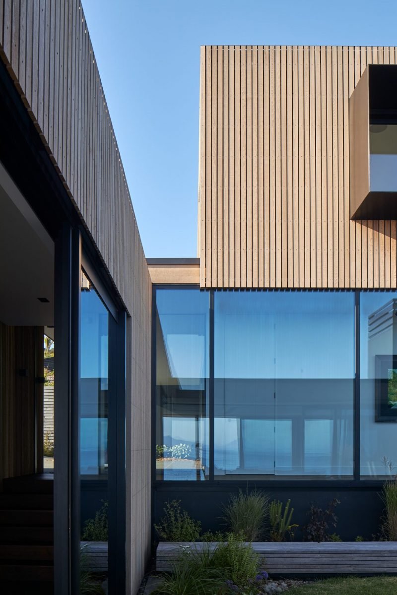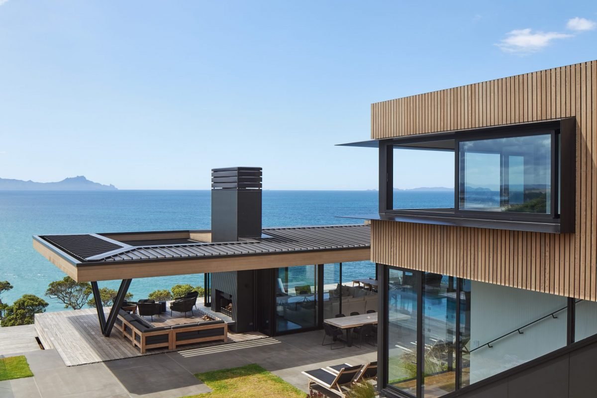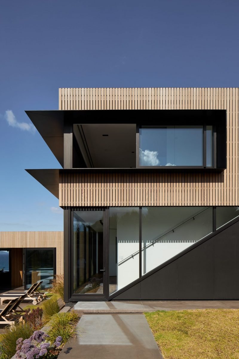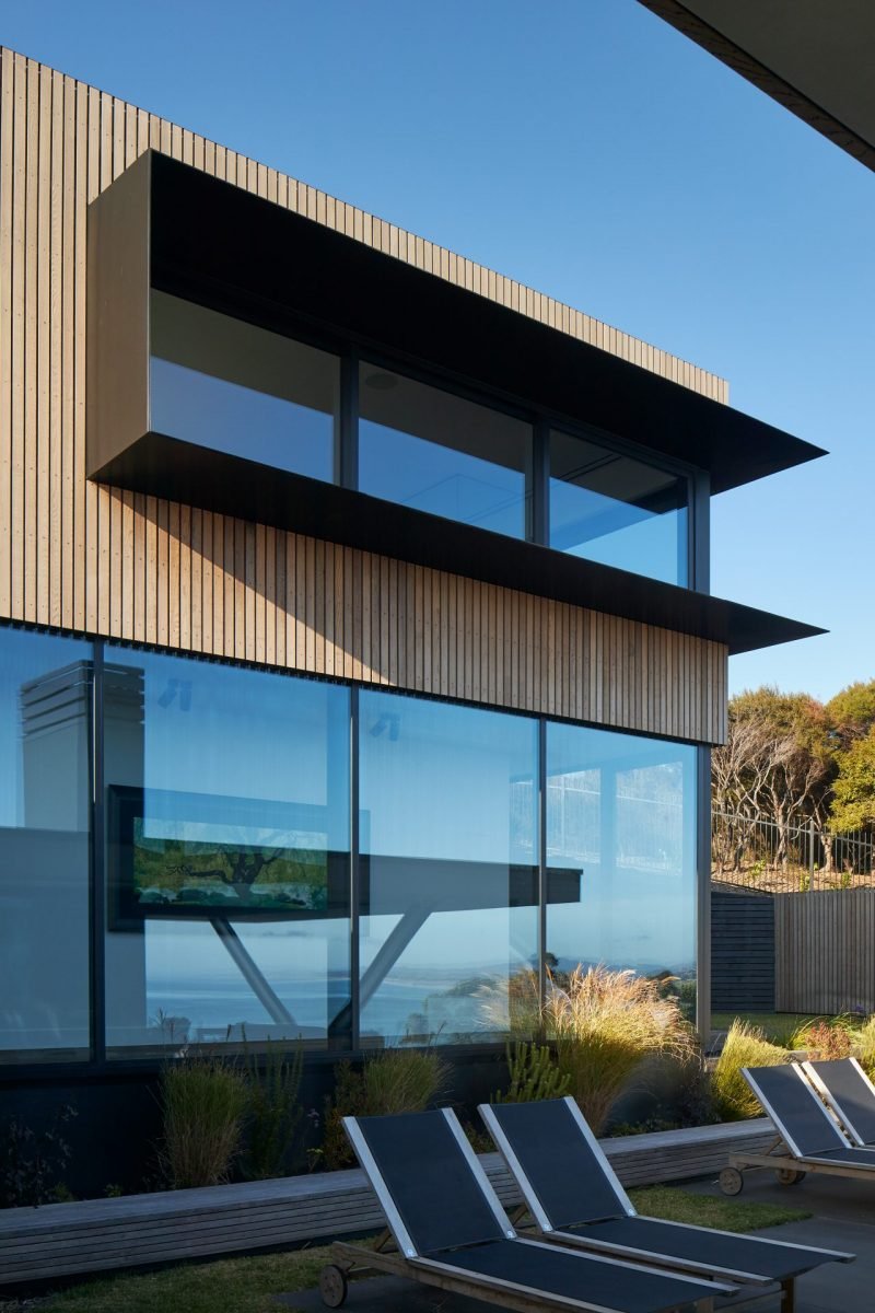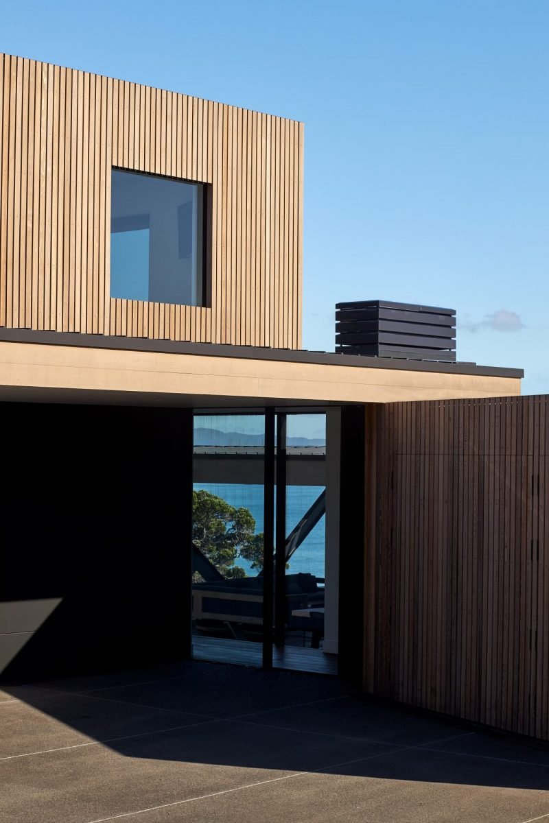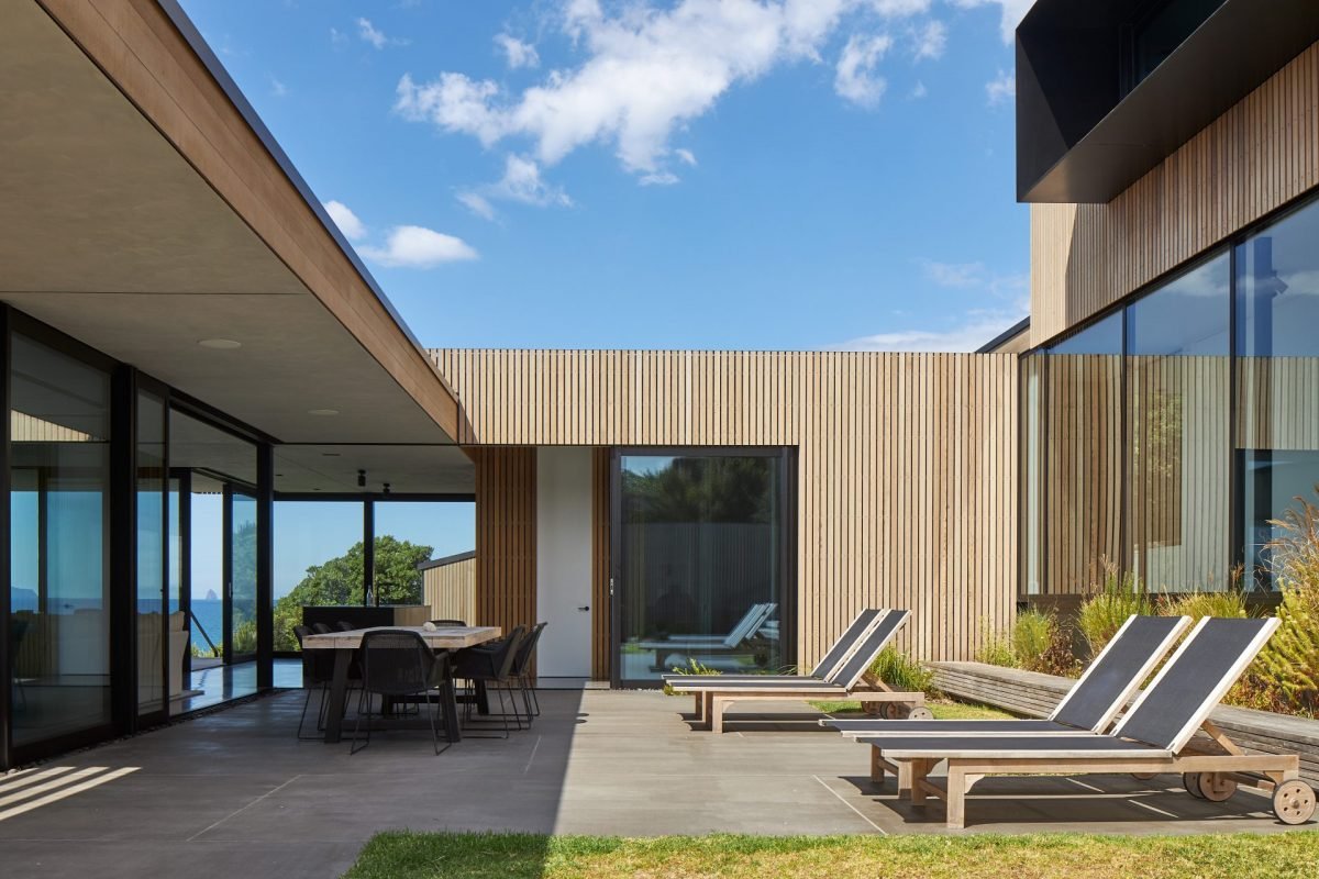 There were considerable earthworks and retaining involved to be able to provide our clients with a sweeping wrap around deck free from any balustrades. The brief also increased to include a swimming pool and spa, which ultimately really brought the whole place together. Standing at the pool it almost feels like the pool is one with the sea.