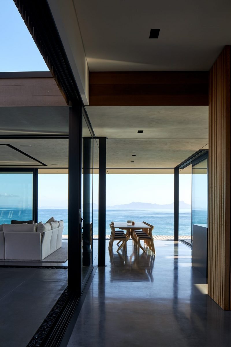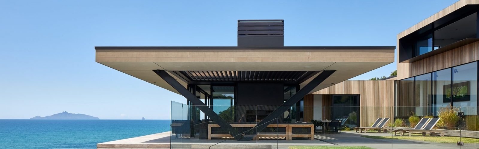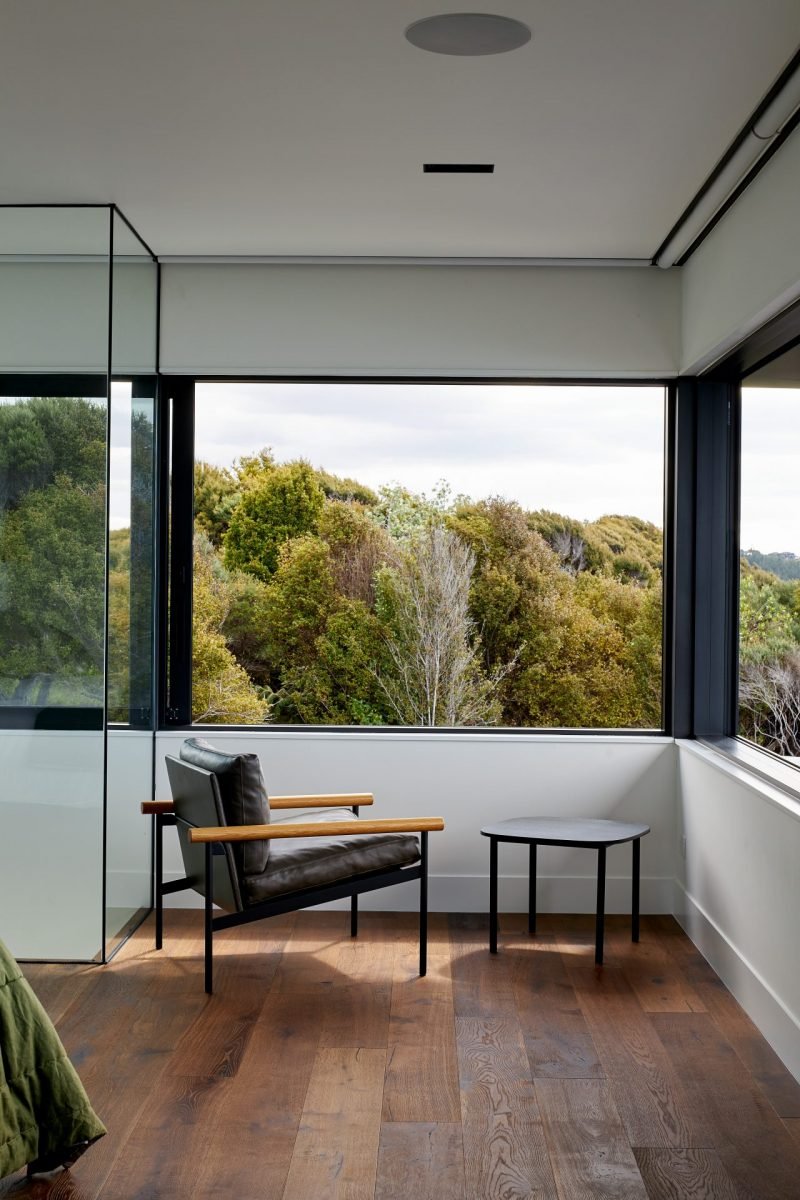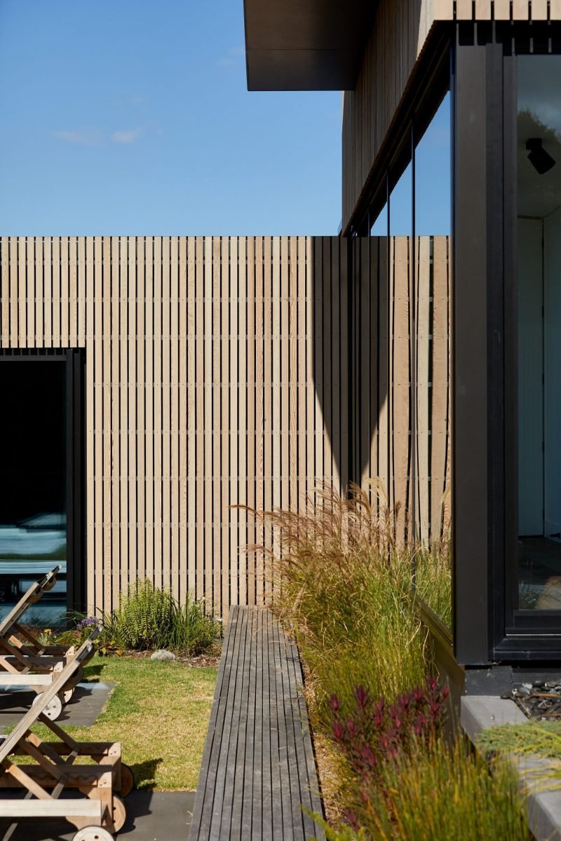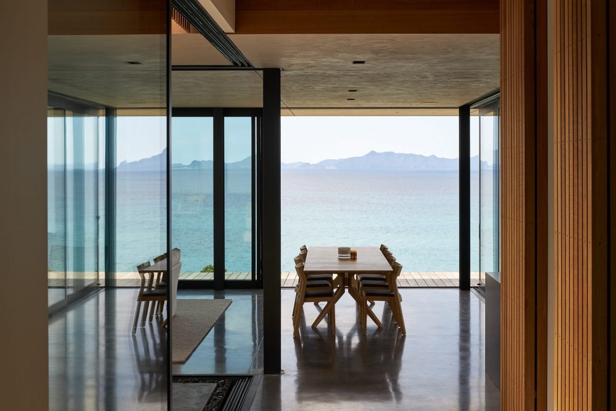 There were considerable earthworks and retaining involved to be able to provide our clients with a sweeping wrap around deck free from any balustrades. The brief also increased to include a swimming pool and spa, which ultimately really brought the whole place together. Standing at the pool it almost feels like the pool is one with the sea.